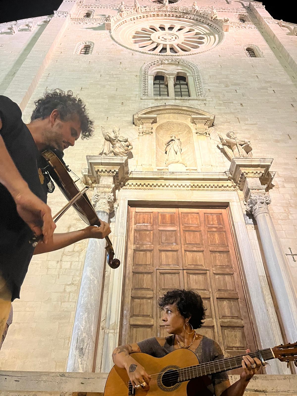 They play the songs of the Sicilian tradition. Cristina has always played these songs, Luciano does not understand Sicilian and has to ask the translation. They played for the first time on Rocco's birthday, and have not stopped since then. The stories told in these songs, many of them first sung by Rosa Balistreri, are much older than our memories and go back in time. And we do not stop singing them and their themes about protest, about play, about denouncing the oppressed, about love. Voice and guitar: Maria Violenza Viola: Luciano Turella (Irtumbranda)